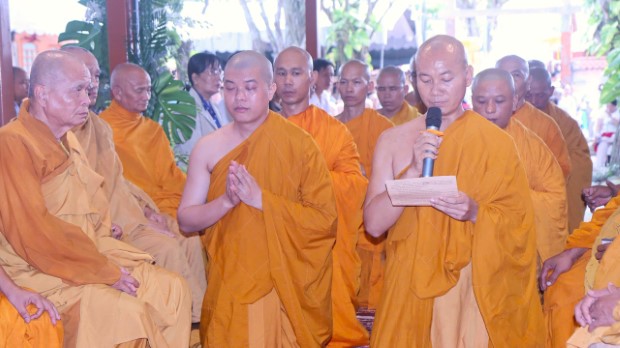Thay mặt HĐCM GHPGVN, HT. Thích Huệ Tài đã tuyên đọc điếu văn tri ân những công đức to lớn của cố Trưởng lão Hòa thượng Giác Dũng, người đã cống hiến cả cuộc đời cho sự phát triển của Phật giáo tỉnh nhà nói chung và Phật giáo Khất sĩ nói riêng.