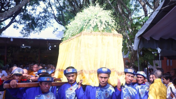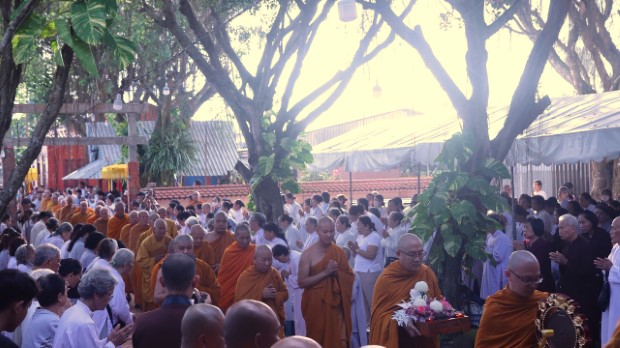 An Giang: Trang nghiêm Lễ truy niệm và phụng tống kim quan Trưởng lão Hòa thượng Giác Dũng đến nơi trà tỳ