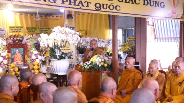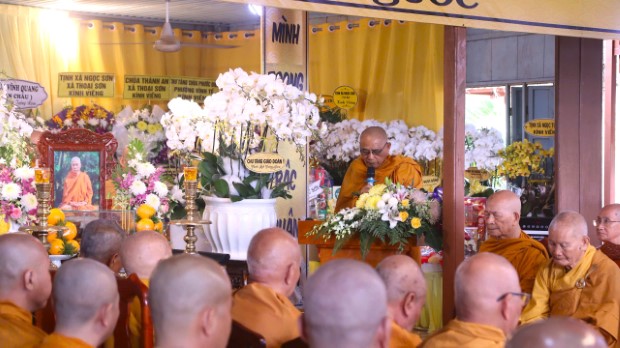 Chứng minh lễ truy niệm có sự hiện diện của Trưởng lão HT. Chau Ty – Phó Pháp chủ HĐCM, Chứng minh Ban Trị sự tỉnh An Giang; Trưởng lão HT. Thích Huệ Tài – UVTT HĐCM, Chứng minh Ban Trị sự tỉnh An Giang; HT. Thích Thiện Thống – Phó Chủ tịch HĐTS, Phó Trưởng ban kiêm Chánh Thư ký Ban Tăng sự T.Ư, Trưởng ban Trị sự GHPGVN tỉnh An Giang.