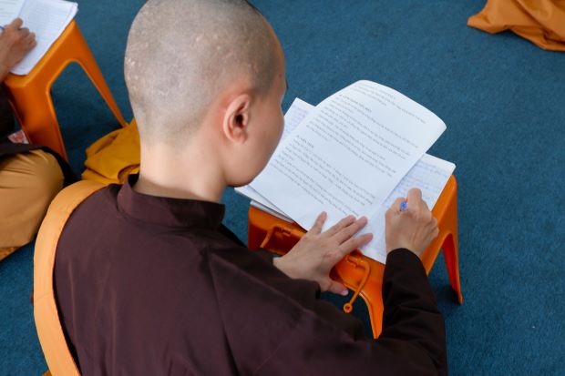 Ngày thứ 6 của khóa BDĐH lần thứ 10 tại Pháp viện Minh Đăng Quang (P.Bình Trưng, TP.HCM), sáng 3/8/2025 (10/6N/Ất Tỵ), chư Tôn Đại đức Tăng Giáo thọ sư khóa tu, với sự hiện diện của ĐĐ. Minh Giáo và ĐĐ. Giác Thống, đã lần lượt có những chia sẻ sâu sắc dành cho chư hành giả Tăng Ni Sa-di, Tập sự và các vị Phật tử mới bước chân vào đạo, về việc “nuôi lớn lý tưởng” và “vun bồi công hạnh”.