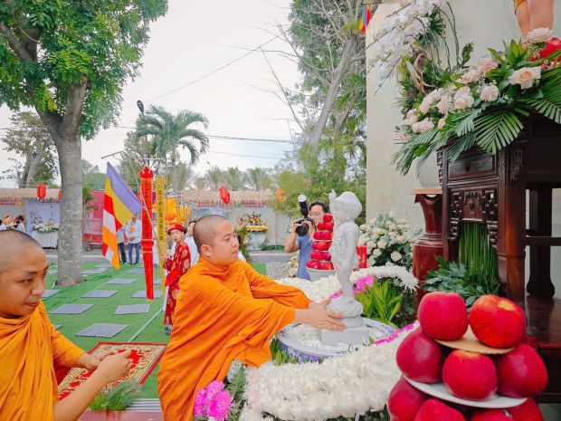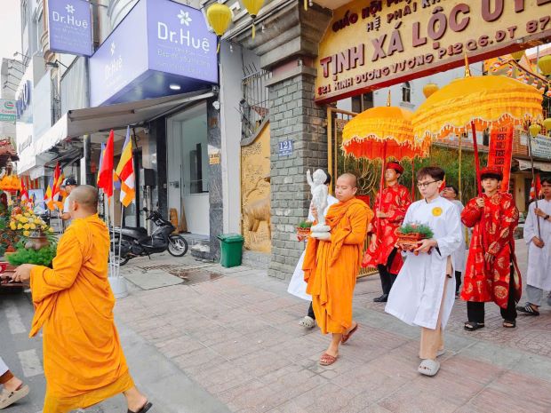 Theo đó, dưới sự chủ trì của HT. Giác Điệp – Giáo phẩm Hệ phái, Tri sự phó GĐ.VI PGKS và TT. Giác Nhuận – Ủy viên Ban Trị sự GHPGVN TP.HCM, Phó Ban thường trực Ban Trị sự Phật giáo Q.6, Tri sự phó GĐ.VI PGKS, toàn thể hội chúng đã trang nghiêm cung rước tôn tượng Đức Phật Thích Ca sơ sinh từ Tịnh xá Lộc Uyển (Q.6, TP.HCM) về Tịnh xá Kỳ Viên.